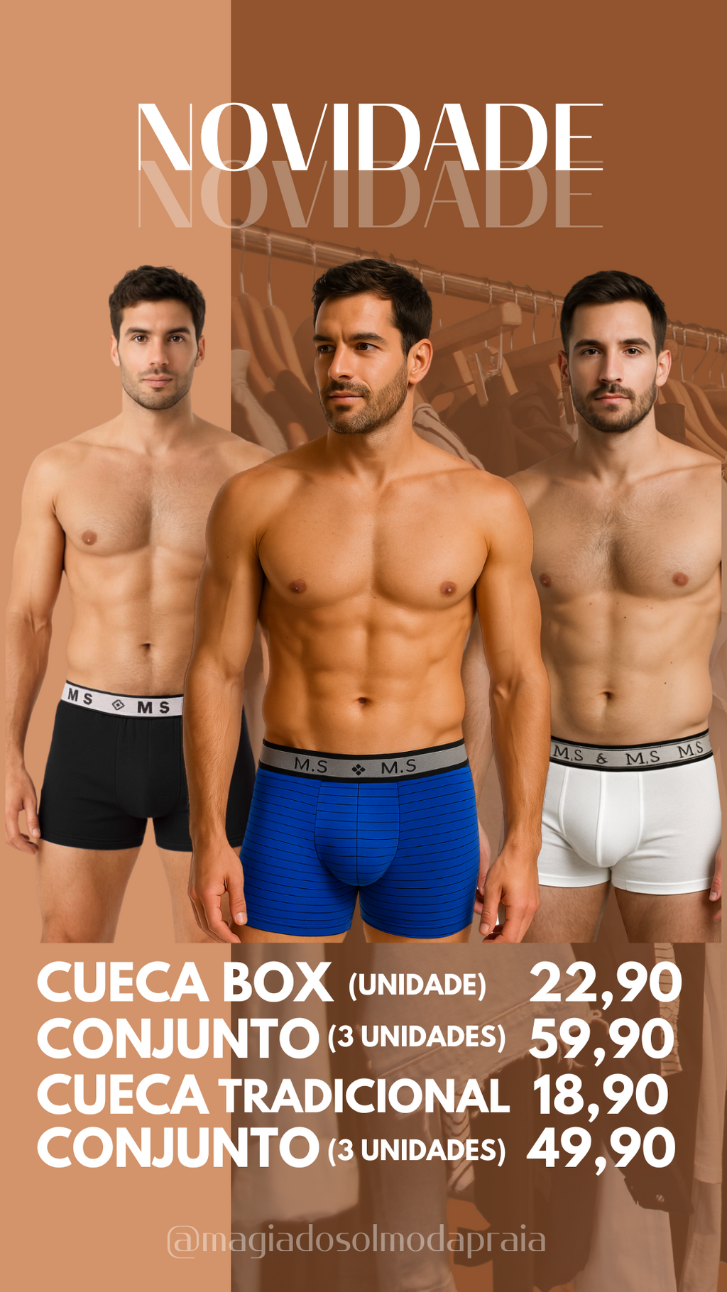 As cuecas, tanto na versão boxer tradicional quanto na cavada, são confeccionadas em algodão com elastano, garantindo toque macio, conforto prolongado e excelente absorção. O tecido respirável ajuda a manter a pele seca e fresca durante todo o dia, proporcionando bem-estar em qualquer ocasião.